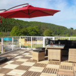 Une autre grande terrasse avec BBQ se situe à côté d’un terrain de pétanque et d’un parc pour nos animaux (chevaux, ânes et chèvres naines).