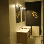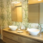 Les toilettes sont séparées des salles d’eau qui comprennent chacune de larges douches, éviers, table à langer, …
